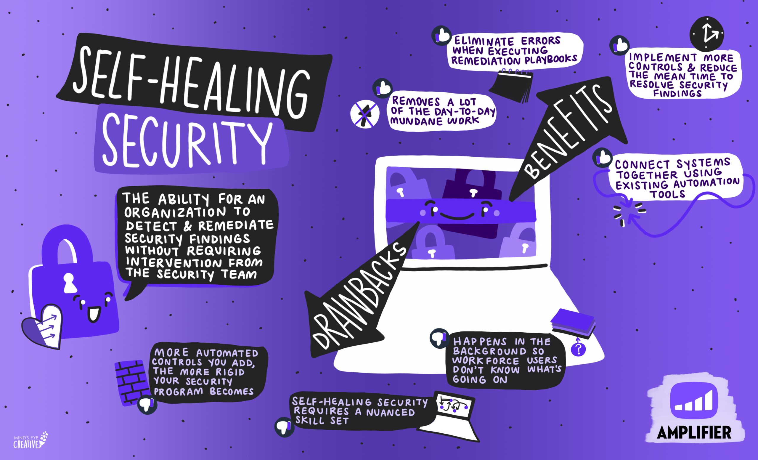 The benefits of self-healing security are significant: SecOps teams are orchestrating remediation of common security findings by connecting systems together using existing automation tools. This allows resource-constrained security teams to implement more controls and greatly reduces the mean time to resolve security findings. It eliminates errors when executing remediation playbooks. And ultimately, it removes a lot of the day-to-day mundane work that bogs down the security team to free them for more strategic initiatives.